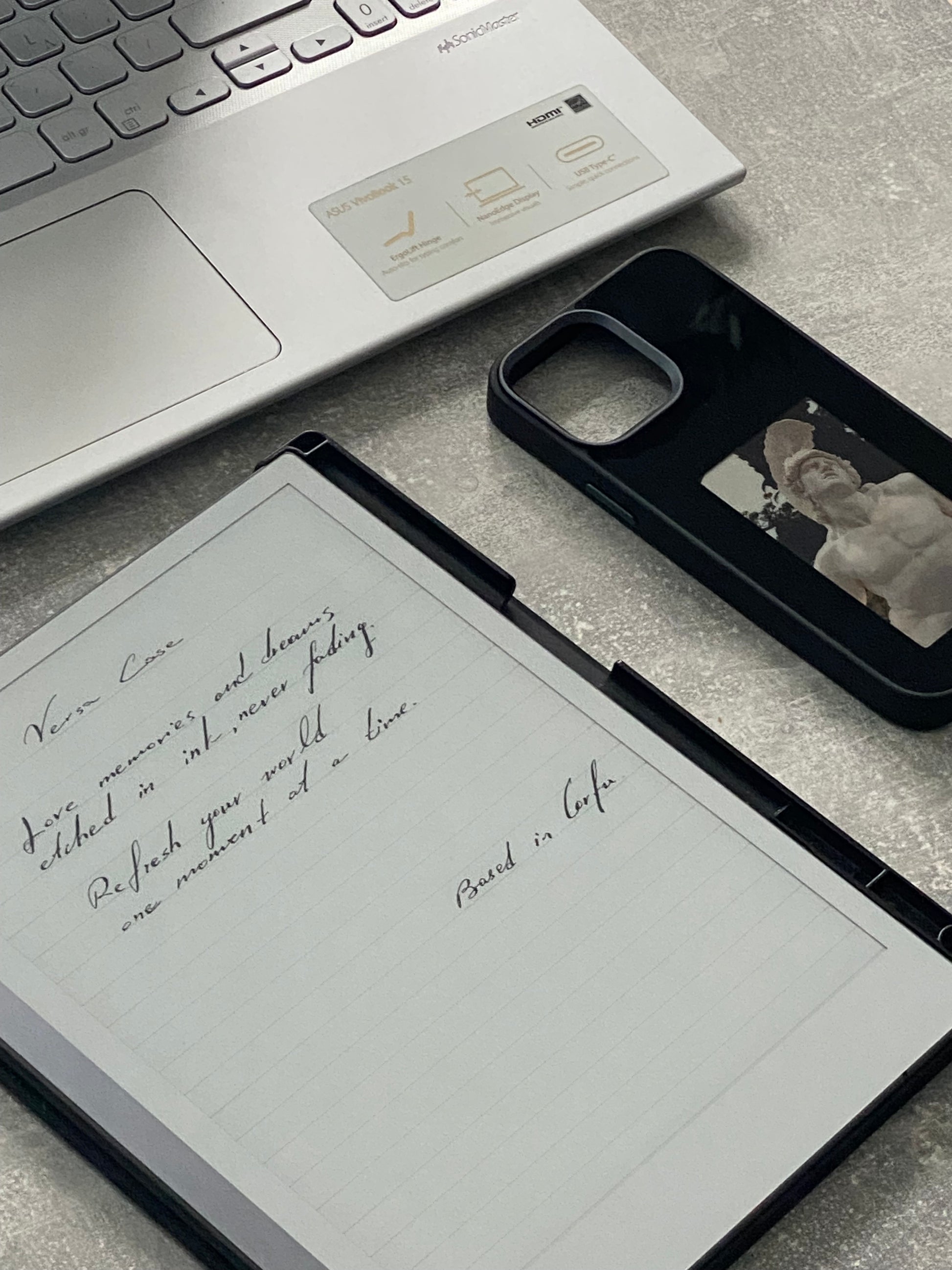 Εξέλιξε τη θήκη σου με προηγμένη τεχνολογία E Ink που σου δίνει απόλυτη ελευθερία έκφρασης. Η οθόνη E Ink αποτυπώνει μαύρο, λευκό, κόκκινο και κίτρινο σε καθαρή HD ανάλυση, δημιουργώντας ένα μοναδικό και απόλυτα προσωπικό αποτέλεσμα.